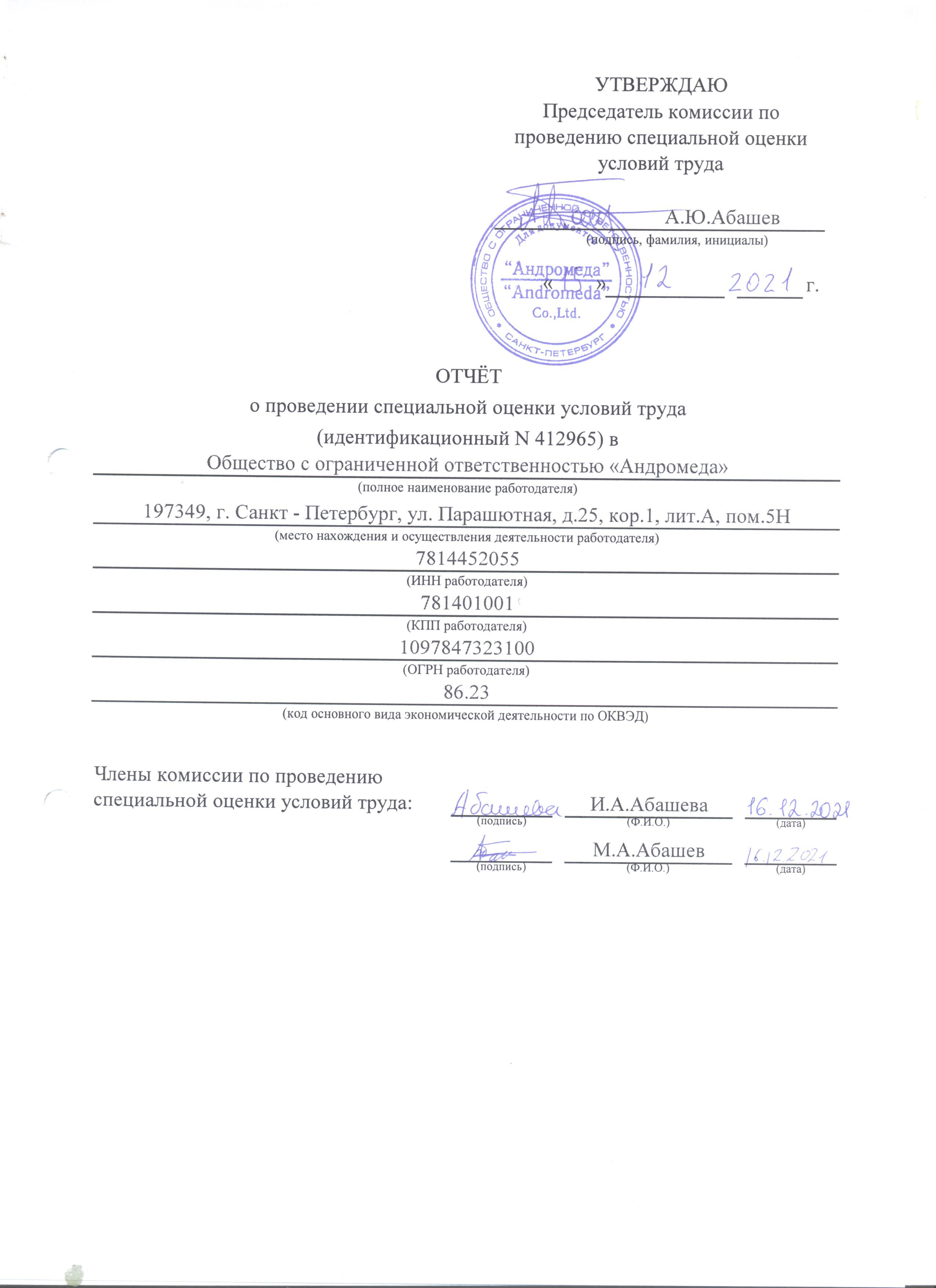 формы отчета о проведении специальной оценки условий труда и инструкции по её заполнению», проведена